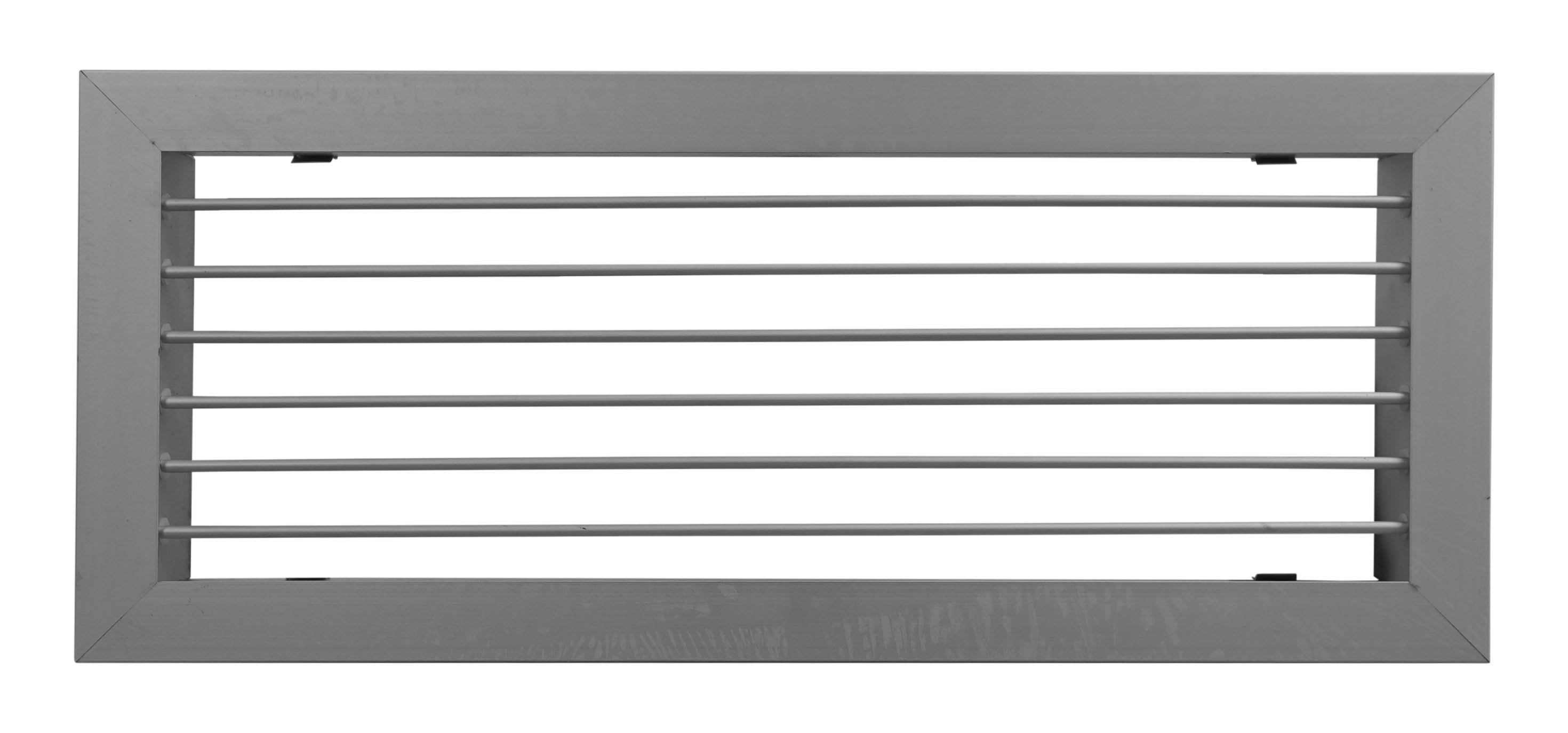 Grille de soufflage et de reprise à ailettes orientables, simple déflection, aluminium, débits de 140 à 330 m3/h, dimensions 200 x 100 mm