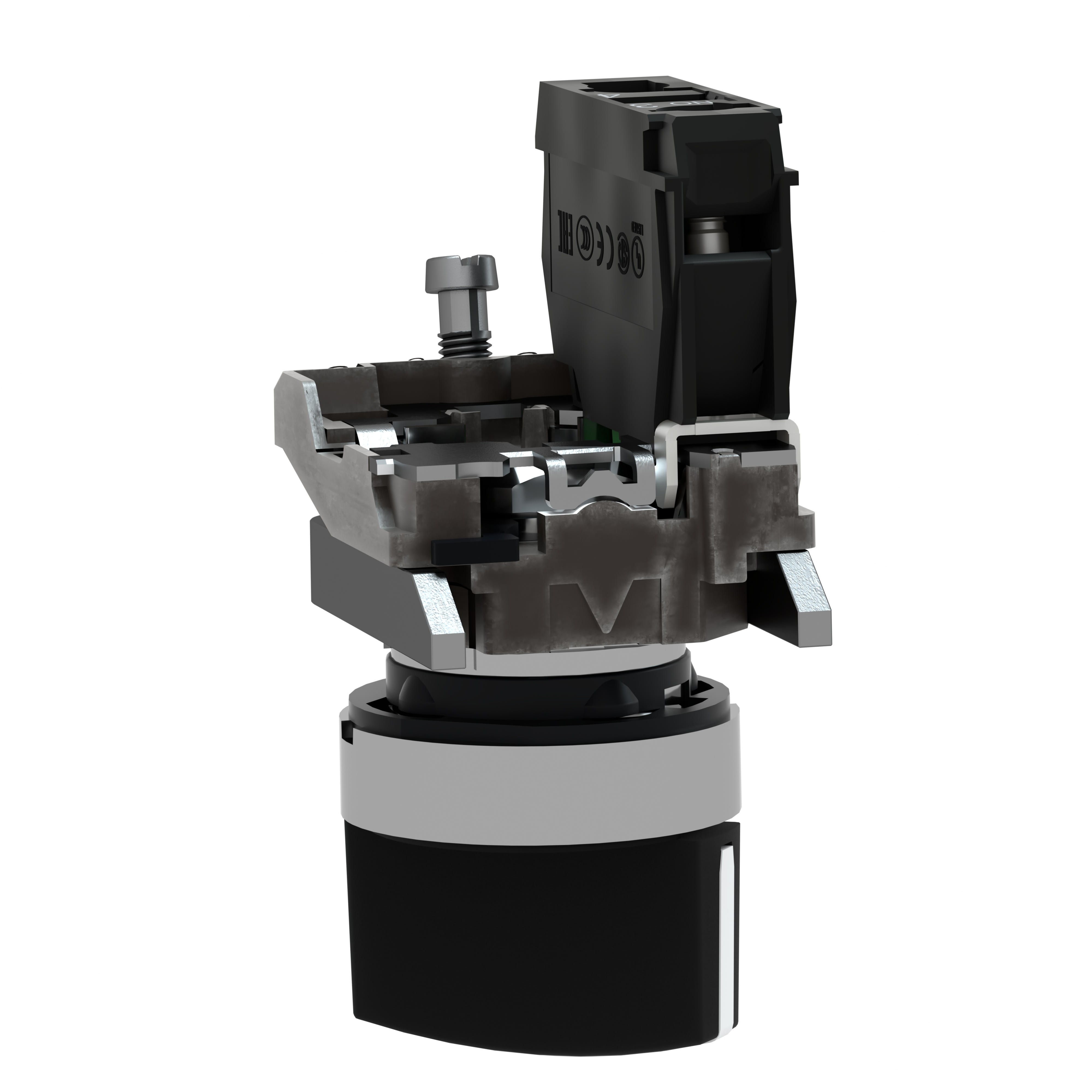 Il se monte facilement dans des découpes standard de 22 mm de diamètre et se raccorde à vos circuits de commande à l’aide de simples bornes à vis-étriers.