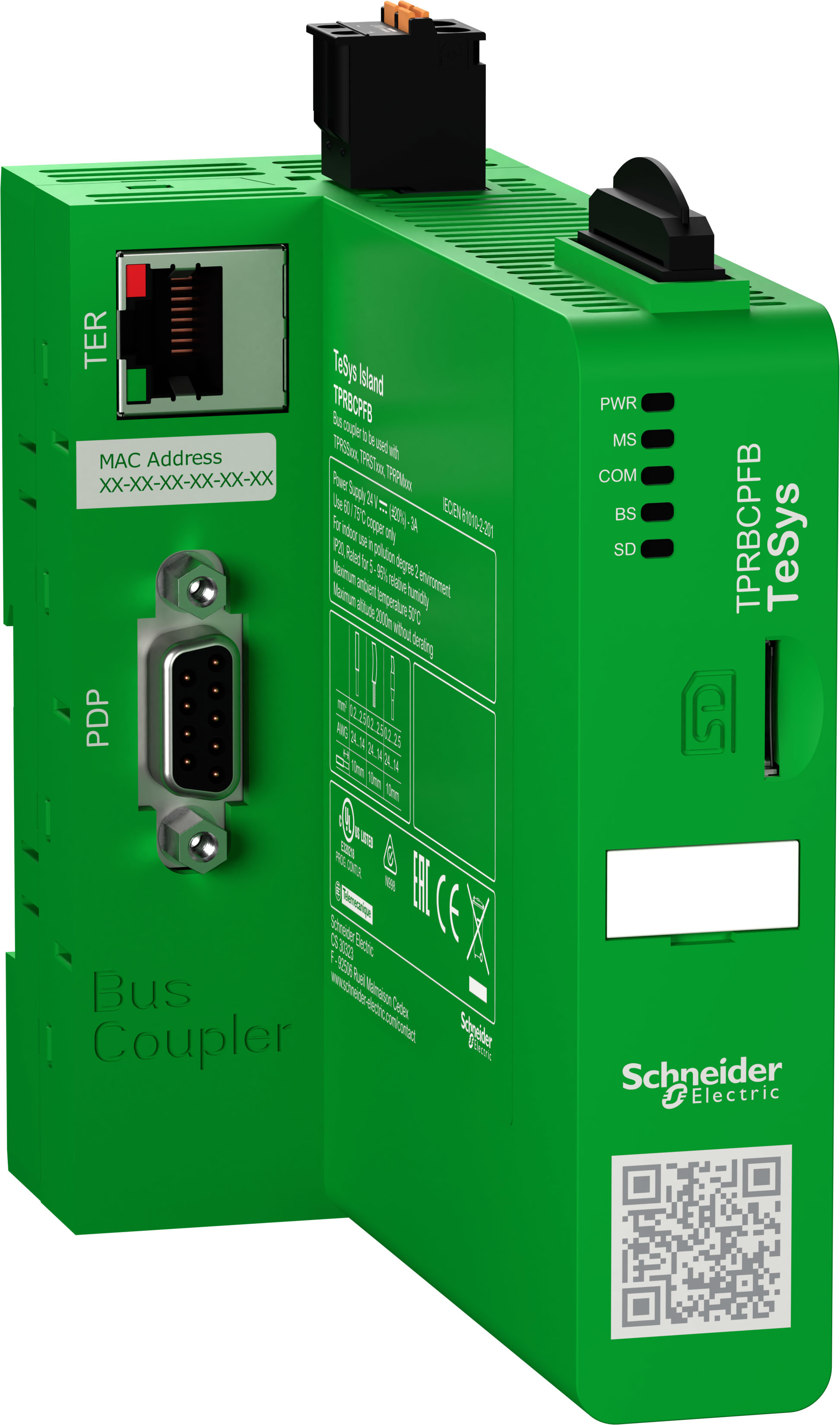 TeSys island - tête de communication Profibus ? Profibus DP - 1 SUB-D 9 - 1 RJ45 - 1 micro SD - Type 3 data-link - Client DHCP/SNTP - tension alimentation 24 V CC ? courant d?emploi 3A maxi ? IP20 - RoHS UE - norme EN/CEI-CSA-UL-EAC