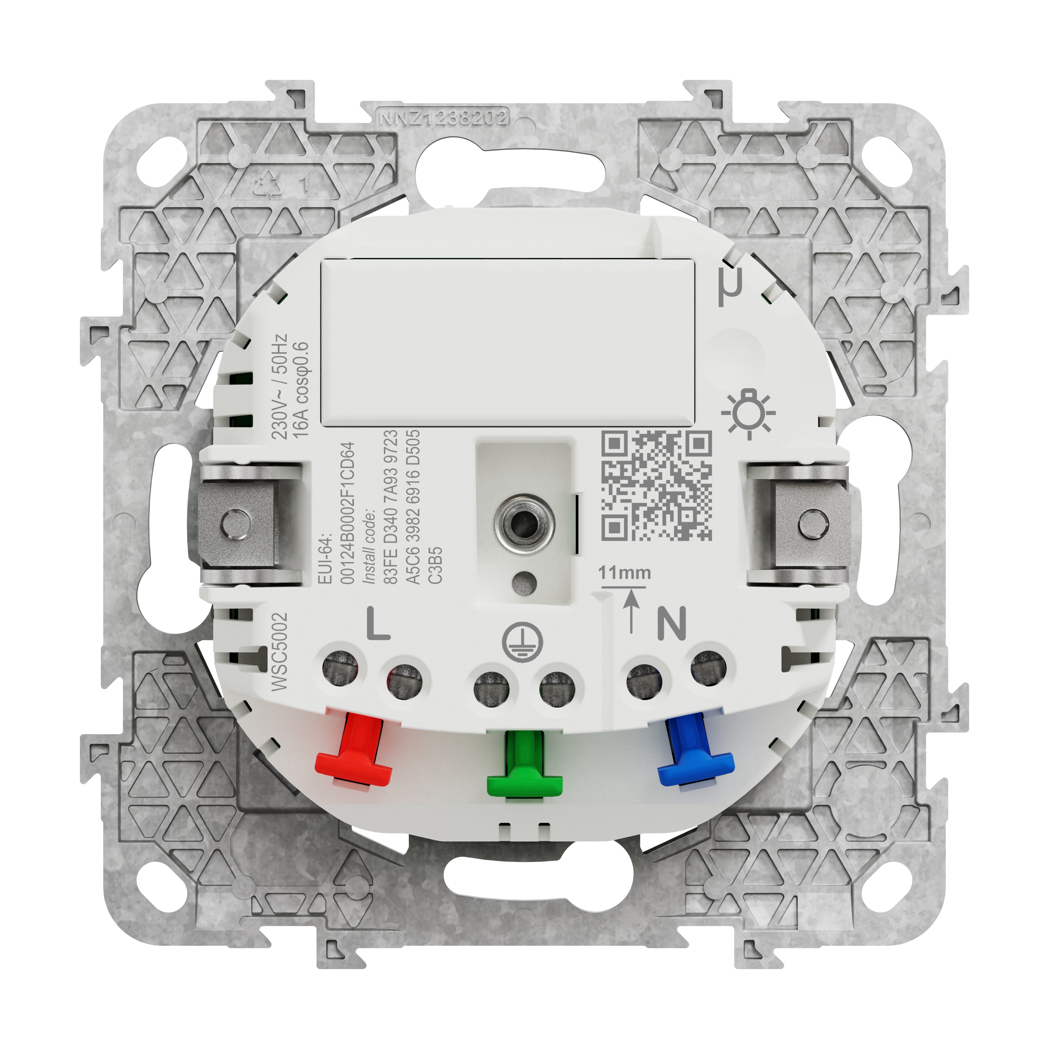 NU555918 se compose du mécanisme de prise connectée et d'un enjoliveur de prise blanc mat RAL9010. Il sera à associer avec un boitier pour une installation saillie ou un cadre pour une installation encastrée, de même couleur de préférence. Pour une installation soignée une plaque de finition sera également à rajouter.