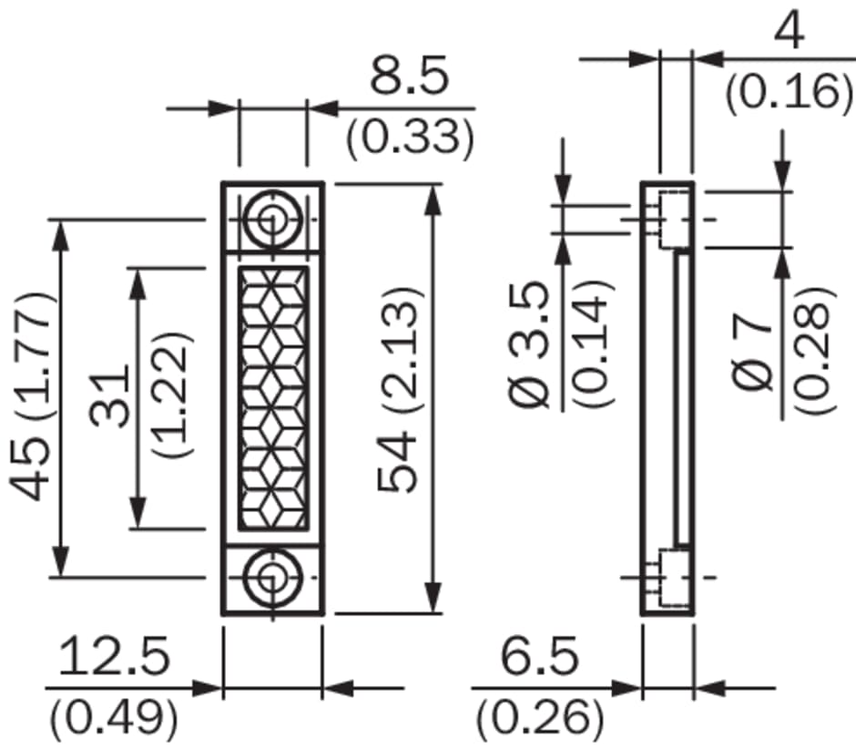réflecteurs, carré, P45A, Groupe d'accessoires: Réflecteurs, Famille d'accessoires: Carré, Description: Rectangulaire, à visser, Dimensions: 12,5 mm 54 mm, Température de fonctionnement: ?20 °C ... +65 °C