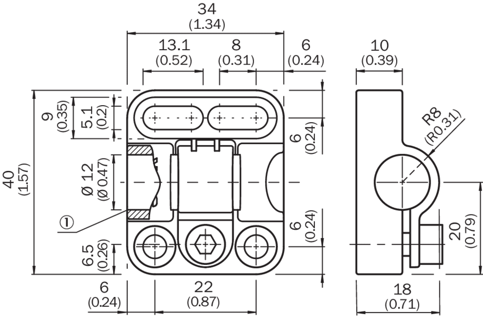 systèmes de serrage et d'alignement, supports de serrage, BEF-KHF-M12, Description: Bloc de serrage pour capteurs cylindriques M12 avec butée fixe, Matériau: Plastique, Détails: Plastique (PA12) renforcé de fibres de verre, Contenu de la li