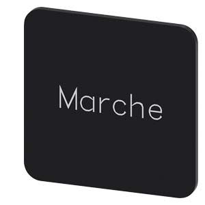 Plaquette de repérage à coller sur le boîtier, Taille de plaquette 22 x 22 mm, Plaquette noire, Police blanche, avec inscription: Marche