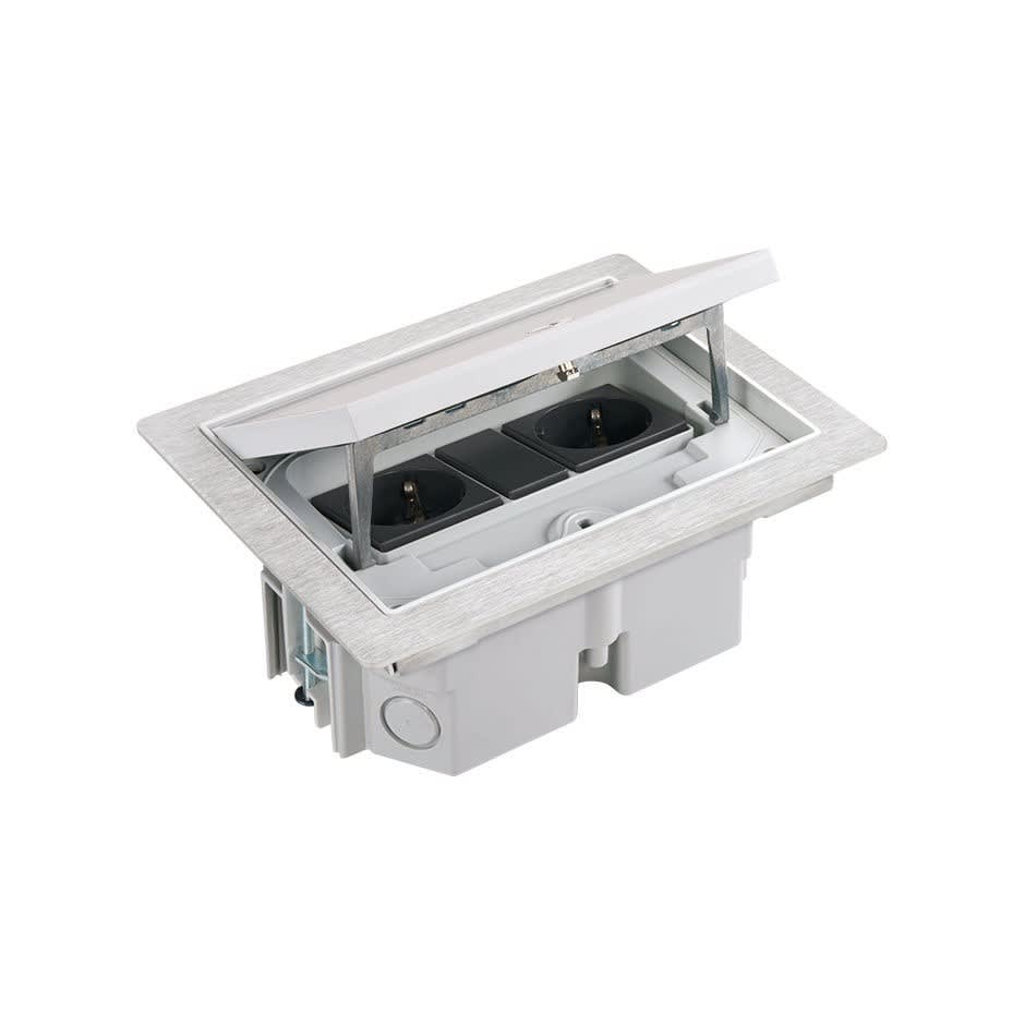 Kit boîtier de sol surélevé étanche IP66 avec 2 prises schuko + 1 couvercle aveugle étroit et gaine