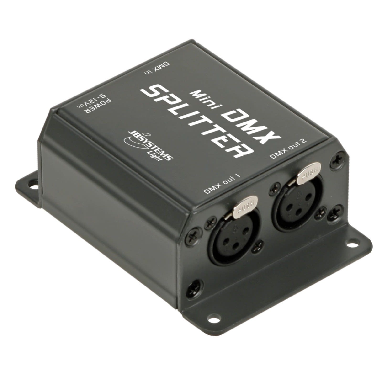 Mini DMX Splitter, Mini répartiteur DMX 1in / 2out, noir, La fonction Booster rend votre installation DMX plus fiable, plus flexible à configurer,non programmable, sortie XRL 3 broches, 102mX72mmX39mm, application: Club, Scène & Location