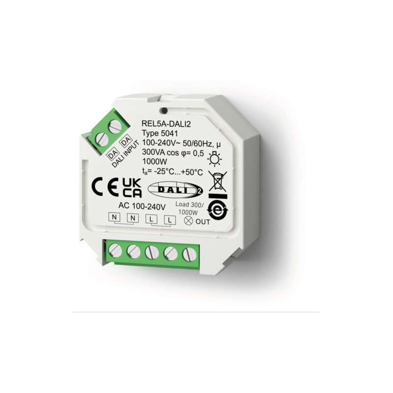 Commutation de luminaires conventionnels via DALI Un classique - dans une installation DALI existante, il faut maintenant intégrer un luminaire conventionnel non DALI, comme par exemple un éclairage de tableau ou un éclairage de bureau séparé. Notre relais DALI-2 résout le problème ! Simplement intégré dans le bus DALI, il est activé par tous nos capteurs APC DALI-2 comme n'importe quel ballast électronique. Qu'il soit intégré dans le bus DALI, ouvert par notre série 3000, Control Pro, Control Pro 2 ou avec notre nouveau IR Micro Office, l'essentiel est qu'il s'agisse d'un DALI-2 APC. Avec le relais, il est possible de commuter jusqu'à 50 pièces de luminaires LED jusqu'à 300 W (avec une capacité de moins de 176 μF). Cela se fait via le bus DALI conformément à la norme DALI-2 selon CEI 62386 partie 208. Une alimentation en tension séparée est prévue, de sorte qu'un seul participant DALI est nécessaire par 2 mA. La commande s'effectue via le bus DALI conformément au standard DALI-2 selon CEI 62386 partie 208 et offre une installation simple dans des boîtes d'encastrement courantes. Le réglage d'usine prévoit que le relais soit fermé.