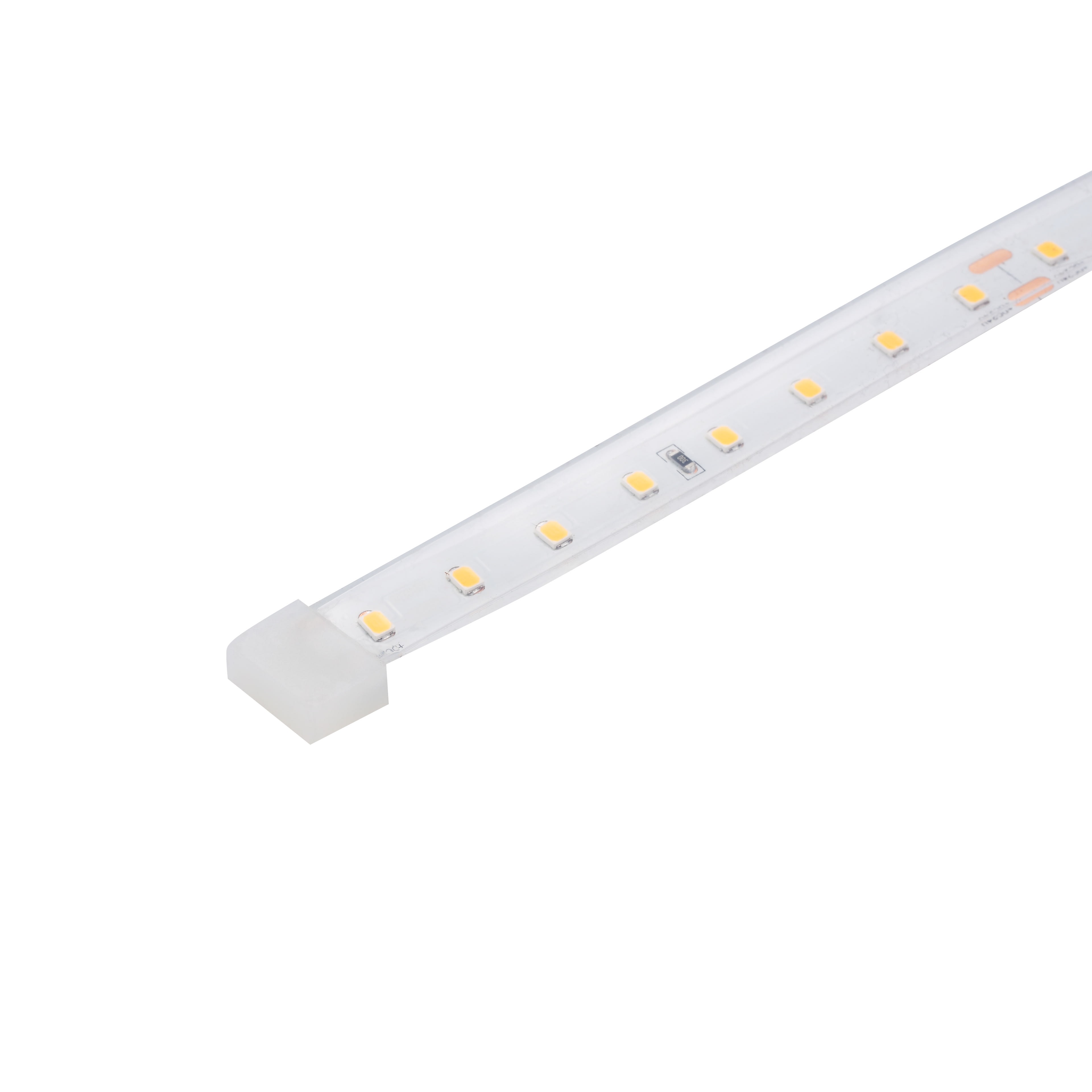 Ruban Led. Température de couleur (CCT) 3000K, IRC>90. Flux lumineux sortant 8250lm/5m, soit 1650lm/m. Nombre de LED pour 5m: 400. Puissance consommée 72W/5m. Efficacité lumineuse 115lm/W. Découpable tous les 10cm. Maintien du flux de L70B50: 50.000h. IP65. Classe III. 650°C.