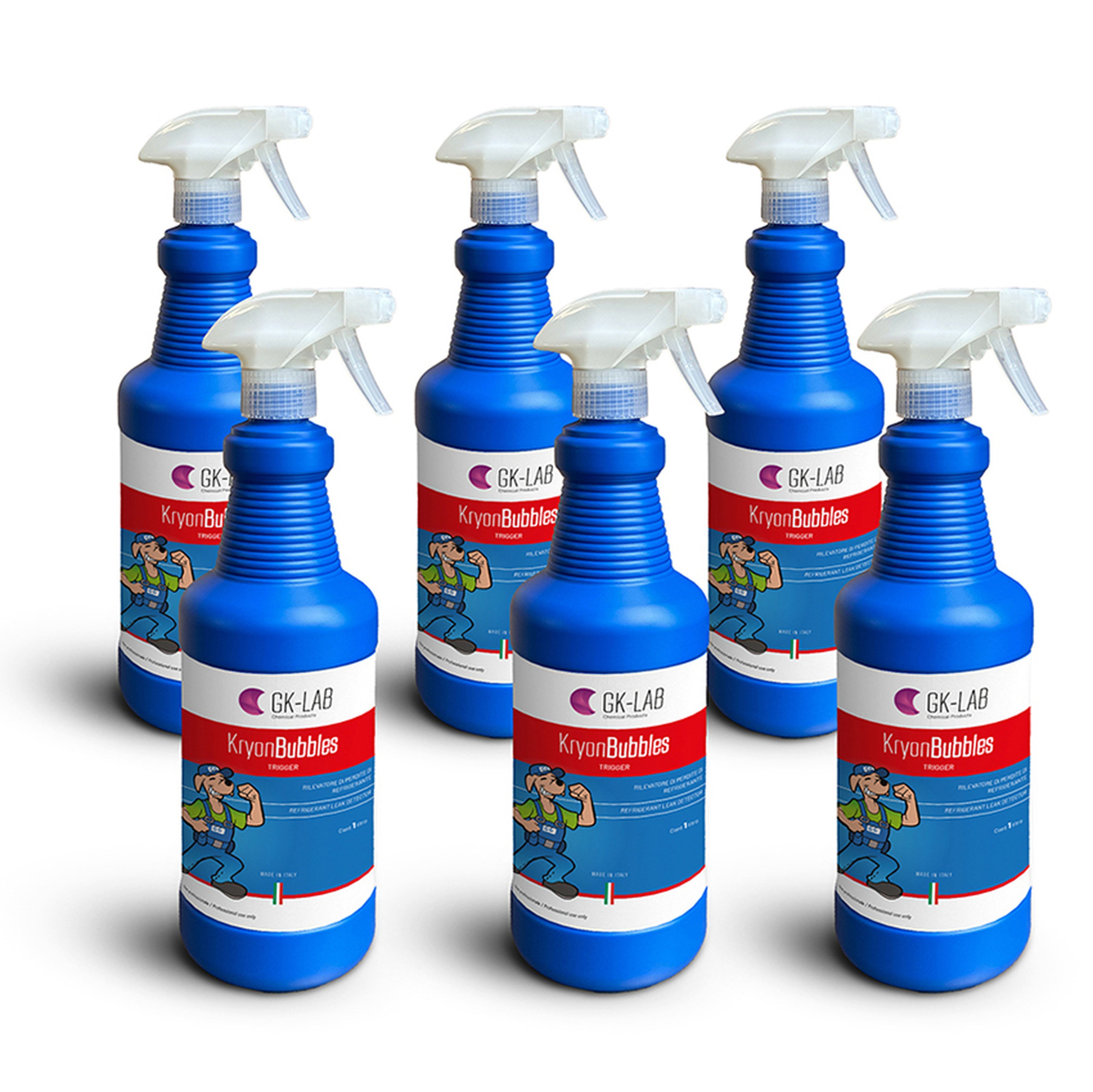 KryonBubbles SPRAY est un détecteur de fuites pour les gaz réfrigérants, liquéfiés et comprimés, y compris les gaz inflammables. Conçu avec le niveau de viscosité adéquat, il adhère efficacement aux surfaces, ce qui garantit une grande sensibilité aux fuites. Il forme des bulles très visibles et persistantes, même à basse température, ce qui permet de détecter les fuites avec une précision absolue. KryonBubbles SPRAY fonctionne même en présence d'humidité.