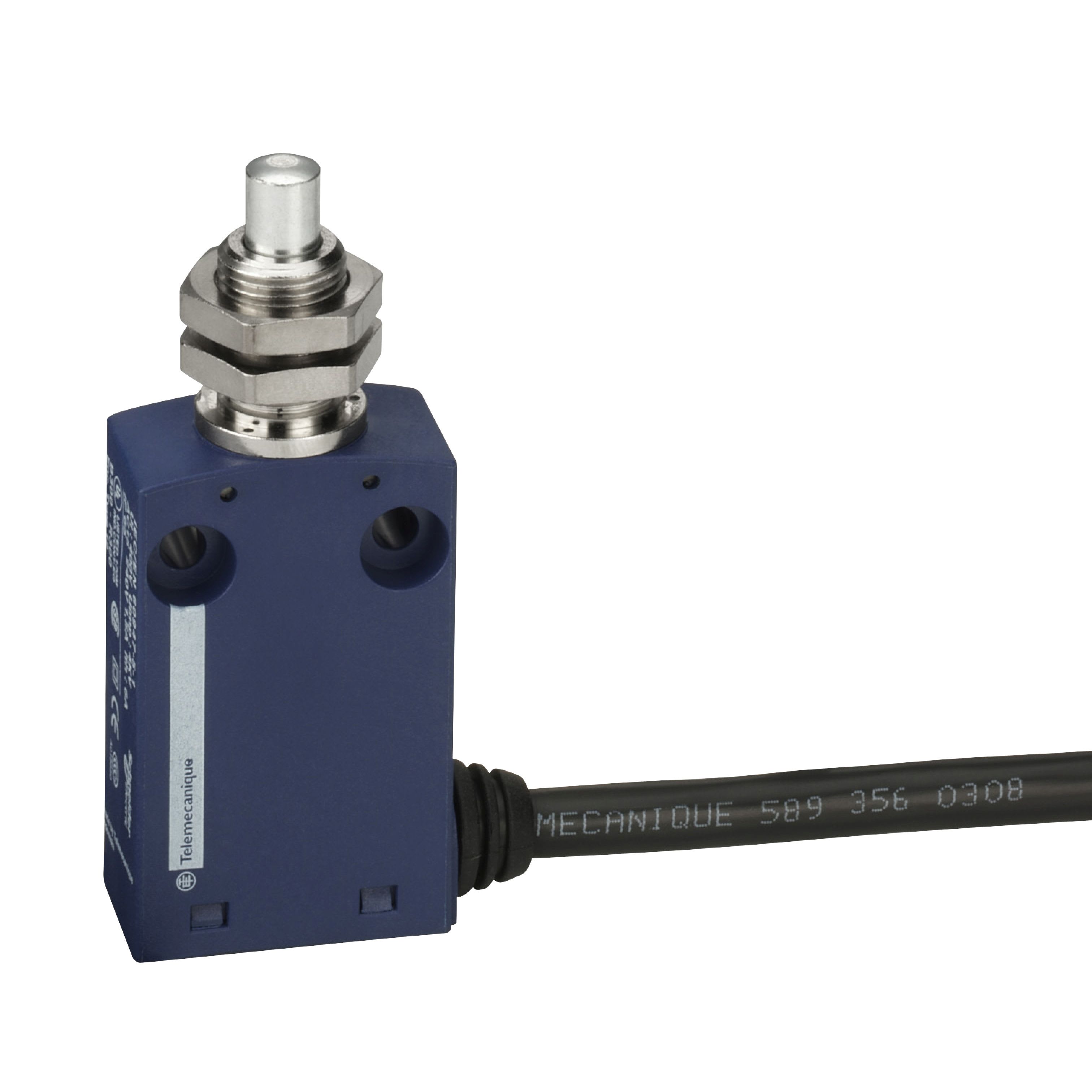 Telemecanique Sensors XCMN - interrupteur de position capteur de fin de course format miniature Plastique - tête poussoir M12 métal - 1NO+1NC action brusque - câble PVC 1m - LHP 30x50x16mm - IP65 IK04