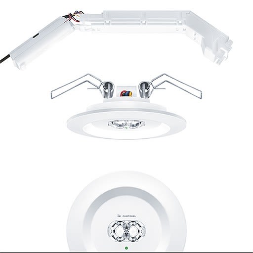 Luminaire de sécurité à LED pour l'éclairage anti-panique (BAES: bloc autonome d'éclairage de sécurité) selon la norme NF EN 60598-2-22 et la série de normes NF C71-800 ; Le modèle High performance (HP) permet l'agrandissement de la distance entre luminaires ainsi que des applications avec des éclairements plus élevés (p. ex. 2 lux) ; 2 LED haute puissance, blanc neutre 4000 K ; lentille en Polycarbonate (PC) ; gestion thermique optimale grâce à l'élément refroidisseur ; Luminaire encastré pour découpe de plafond de 68 mm et épaisseur de plafond jusqu'à 25 mm ; Montage rapide sans outil du luminaire à l'aide de clips de fixation de forme spéciale ; remplacement sans outil de l'accumulateur et de l'appareillage ; Collerette en aluminium moulé sous pression, thermopoudré blanc, similaire à RAL 9016 ; boîtier d'appareillages pour montage au plénum en polypropylène (PP) ; Luminaire avec alimentation par batterie individuelle pour 1 h d’autonomie avec 370 lumens ; 3 lumens de flux lumineux minimum en fonctionnement sur le secteur ; affichage de l’état du luminaire via la LED d’état vert / jaune ; Plage de température : de +5 °C à +30 °C ; tension d'alimentation: 230 V AC, 50 / 60 Hz ; Puissance du luminaire: 4,4 W ; ; ; IP20 ; SC1 ; Luminaire avec câble exempt d'halogène ; Borniers enfichables pour le branchement en dérivation jusqu'à 2,5 mm² ; Résistance aux impacts : IK04 ; Dimensions : Ø85 x 4 mm ; poids : 0,44 kg ; Installation dans un boîtier d'encastrement dans le béton à commander séparément ; activation Rest Mode et Relight via le contrôleur Rest Mode ; test fonctionnel effectué automatiquement par le luminaire (Autotest-Performance SATI) ; puissance connectée : 3,2 W ; Luminaire avec marquage D (pour une utilisation dans un environnement ne présentant aucun risque d'accumulation de poussière particulier) ; Batterie intégrée robuste avec une garantie de 3 ans. Conforme aux dispositions de la garantie du fabricant, consultable sur https://www.zumtobel.com/media/downloads/Garantiebedingungen_DE.pdf ; La garantie sur la batterie n'est plus valable si l'installation a lieu trois (3) mois après la livraison EXW (Incoterms 2010).