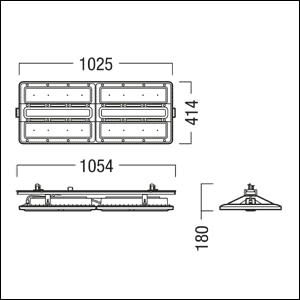 Luminaire industriel à LED pour applications très difficiles, Puissance du luminaire: 196 W, avec convertisseur à LED, Luminaire pilotable via DALI (via DALI uniquement), boîtier en fonderie d'aluminium haut de gamme et résistant à la corrosion, thermopoudré blanc. Buses d’air Venturi pour une excellente gestion thermique et une minimisation des poussières. Vasque transparente en polyméthacrylate de méthyle (PM), grande résistance à la rupture et aux fissures sous contrainte et excellente résistance aux produits chimiques et aux UV, pour des applications industrielles et d'élevage exigeantes. Durée de vie des LED 100000 h jusqu'à une diminution du flux lumineux à 95 % de la valeur initiale. Tolérance de la couleur (MacAdam intial): 2. Flux lumineux du luminaire: 34020 lm, Efficacité lumineuse du luminaire: 174 lm/W Rendu des couleurs Ra > 80, température de couleur 4000 K. Contrôle de l’éblouissement : UGR < 25 suivant la norme EN 12464:2011. Système optique à lentille fermé. Lentilles avec structure diagonale à calottes pour une efficacité maximale. Luminaire à répartition symétrique extensive (wide beam). Positionnement 100% flexible sur toute la longueur du chemin lumineux. Installation mécanique et électrique sans outil sur le rail porteur TECTON IP64 grâce à deux verrous quart de tour rapportés latéralement sur le rail LED - Classe de risque RG0 (IEC/EN 62471), câblage du luminaire sans halogène et sans silicone. Note : Veuillez contacter votre conseiller pour toute spécification lors d’une utilisation dans des atmosphères ambiantes soumises à des contraintes chimiques, à une humidité de l’air élevée ou soumises à de fortes condensations ainsi que lors de fortes fluctuations de températures. Classe de protection : SC1 ; degré de protection : IP64 ; Température ambiante : -10°C à +45°C ; Dimensions : 1054 x 414 x 180 mm. Poids : 15,8 kg..