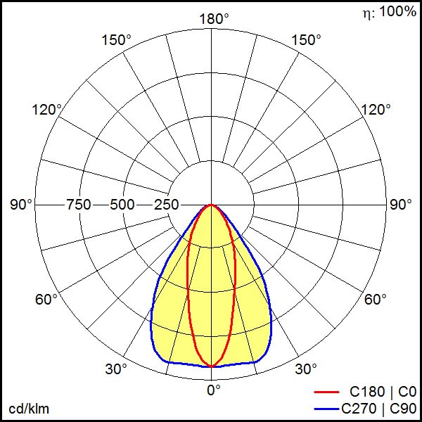 dépréciation flux lumineux, durée d'utilisation moyenne 100 000h, temp.25 °C: