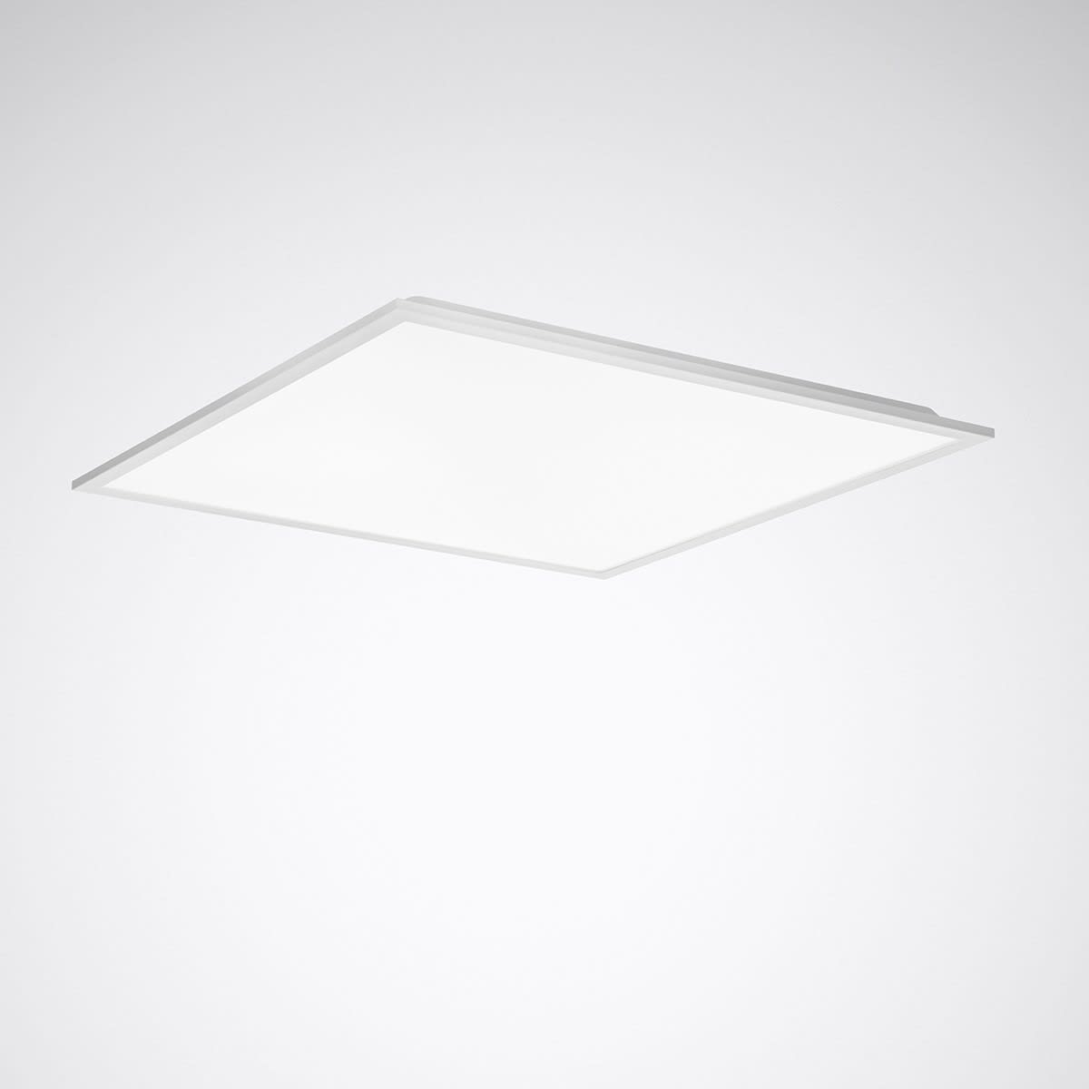 Plafonnier LED carré, à recouvrement à prismes en PMMA. Version M73 (600 mm x 600 mm). Recouvrement en PMMA à microprismatique. À répartition symétrique limitée et extensive des intensités lumineuses. angle d’éclairage 81°. Taux d'éblouissement selon classification UGR (EN 12464-1) < 19. Compatible avec les écrans informatiques selon la norme EN 12464-1 grâce à des luminosités réduites L ≤ 3 000 cd/2 pour des angles d’éclairage supérieurs à 65 °, de manière omnidirectionnelle. Effet lumineux harmonieux grâce à une sortie de lumière uniformément éclairée. Couleur de la lumière réglable sur 2 niveaux (Multilumen). Flux lumineux du luminaire 3600 lm, puissance raccordée 31 W, rendement lumineux maximale du luminaire 116 lm/W. Teinte de lumière blanc chaud ou blanc neutre, température de couleur (CCT) 3000 K ou 4000 K, indice général de rendu des couleurs (IRC) Ra > 80. Tolérance de localisation chromatique (initialement MacAdam) ≤ 5 SDCM. Durée de vie assignée moyenne L70 (tq 25 °C) = 50.000 h. Corps de luminaire en aluminium. Surface à revêtement blanc (similaire à RAL 9016). Dimensions (L x l): 595 mm x 595 mm, hauteur du luminaire 69 mm. Classe électrique (EN 61140) : I, indice de protection (norme EN 60529) : IP20, Indice de protection par le dessous : IP40, degré de résistance aux chocs selon la norme CEI 62262 : IK02, température d’essai au fil incandescent selon la norme CEI 60695-2-11 : 650 °C. Température ambiante admissible (ta): 25 °C . Poids: 2.0 kg. Avec appareillage électronique, à gradation numérique (DALI). Appareillage conf. au standard DALI 2 (EN 62386). Possibilité de commutation et de gradation du luminaire au moyen de la fonction bouton-poussoir via les bornes de commande DALI (TouchDim). L'appareillage est remplaçable conformément aux exigences d'écoconception (Règlement (UE) 2019/2020). Le produit répond aux exigences essentielles des directives européennes applicables et de la loi sur la sécurité des produits et porte le marquage CE. Le luminaire est en outre certifié ENEC par un organisme de contrôle indépendant.