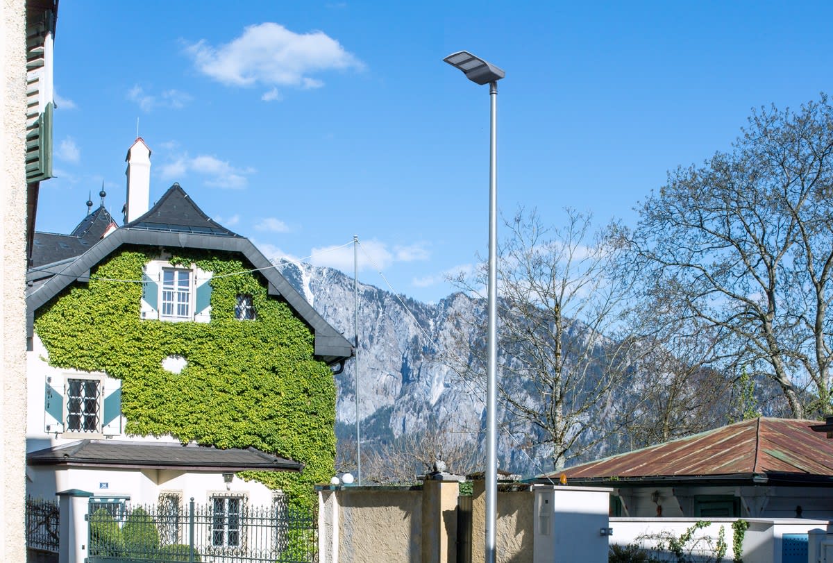 luminaire extérieur sur mât pour un montage droit et un montage pour crosse, angle d'inclinaison réglable. Pour un montage droit et un montage pour crosse pour la tête du mât de Ø 60 mm ou Ø 76 mm. Angle d'inclinaison en 5 paliers de +/- 10 ° réglable, à l'échelle. Convenant également pour un montage sur mâts avec tête de Ø 42 à l'aide de réducteurs à commander séparément. Système optique composé d’une optique à lentilles PMMA. Recouvrement de l’ouverture de sortie de lumière en verre de sécurité simple, clair. À répartition asymétrique extensive des intensités lumineuses. Flux lumineux du luminaire réglable sur 3 niveaux (Multilumen). Flux lumineux du luminaire 10000 lm - 20000 lm, puissance raccordée 73 W - 165 W, rendement lumineux maximale du luminaire 137 lm/W. Teinte de lumière blanc chaud, température de couleur (CCT) 3000 K, indice général de rendu des couleurs (IRC) Ra > 70. Tolérance de localisation chromatique (initialement MacAdam) ≤ 5 SDCM. Durée de vie assignée moyenne L80 (tq 25 °C) = 75.000 h. Corps de luminaire en aluminium Surface à revêtement anthracite (similaire à DB 703). Mât disponible sur demande. Classe électrique (EN 61140) : II, indice de protection (norme EN 60529) : IP66, degré de résistance aux chocs selon la norme CEI 62262 : IK08. Température ambiante admissible (ta): 25 °C Surface exposée au vent Fw 0.200 m2. Poids: 8.1 kg. Avec driver. L'appareillage est remplaçable conformément aux exigences d'écoconception (Règlement (UE) 2019/2020). Résistance aux pics de tension Mode différentiel / mode commun : 6 kV / 10 kV. Le produit répond aux exigences essentielles des directives européennes applicables et de la loi sur la sécurité des produits et porte le marquage CE.