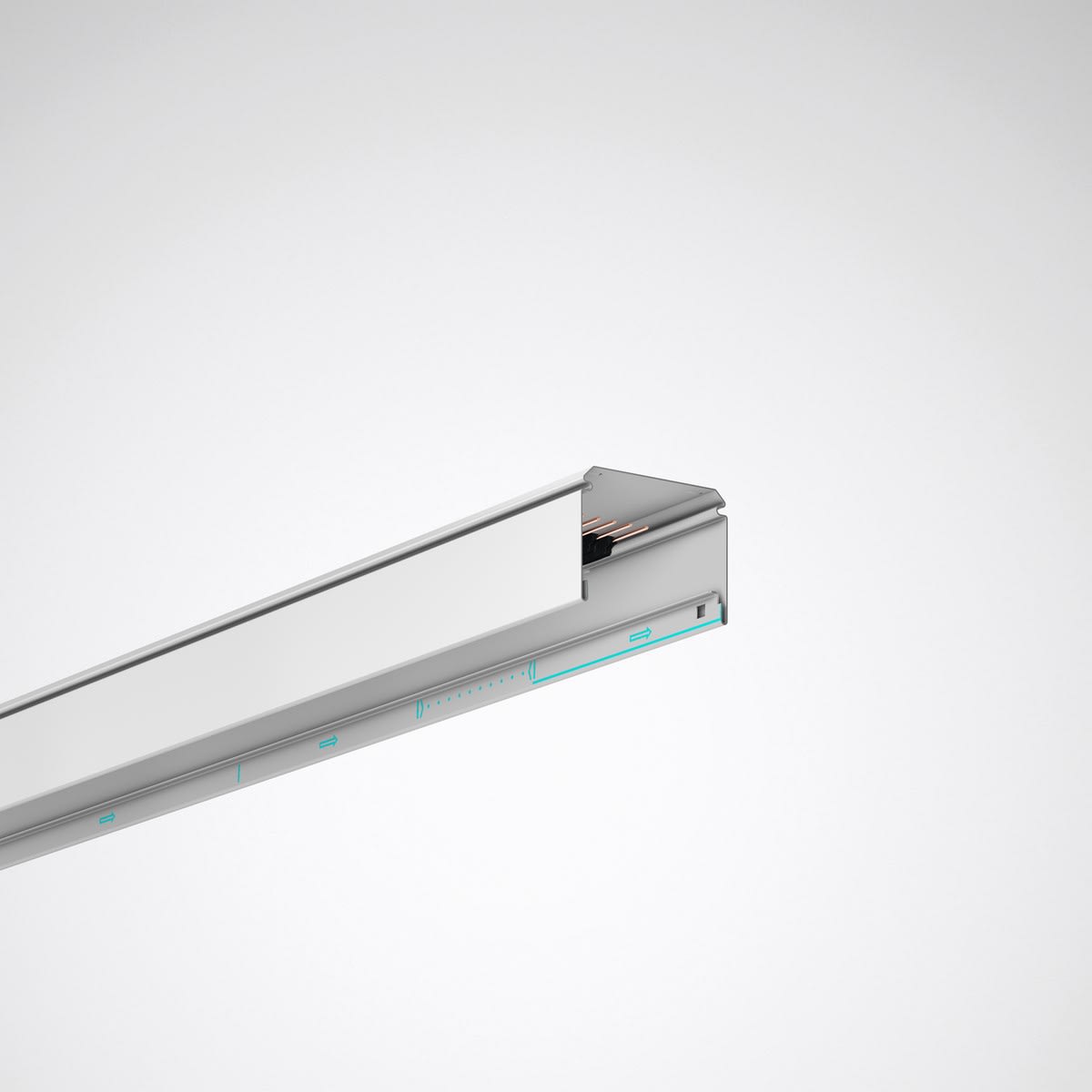 Profil-support sans accouplement mécanique pour ligne continue et connecteur électrotechnique rapide pour les applications de luminaires individuels 78... E-Line 7850 Pro. Avec filerie d’alimentation continu à 7 conducteurs pour un raccordement rapide et sans outil des platines-appareillages librement positionnables, Section de conducteur 7 x 2,5 mm2, sans halogène. Convient pour une utilisation dans des environnements nécessitant un indice de protection allant jusqu'à IP54 (IP20/IP50/IP54). L'indice de protection de la ligne continue est déterminé par les platines-appareillages et les accessoires. Si l'indice IP5x est atteint en combinaison avec la platine-appareillage et les accessoires, le luminaire convient à une utilisation dans des sites de production à risque d'incendie selon la norme DIN EN 60598-2-24 (identifiant D).. Le corps du profil-support est en tôle d'acier profilée et galvanisée à chaud.. Revêtu d'un vernis de protection à l'intérieur, d'un vernis polyester à l'extérieur, couleur blanc (RAL 9016). Longueur du profil-support: 4425 mm. Pour une application en ligne continue, l’entraxe de fixation peut atteindre 4 000 mm.