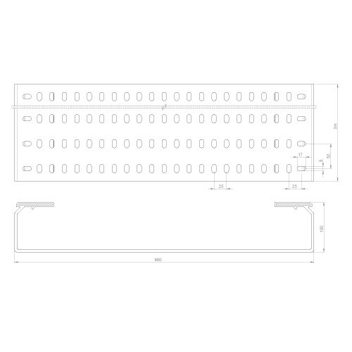 Unex - Chemin de câbles fond perforé gris RAL7035 100x600 U23X - 66620