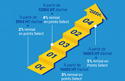 À partir de 500€ HT > 2% remisé en points Select dès le 1er€